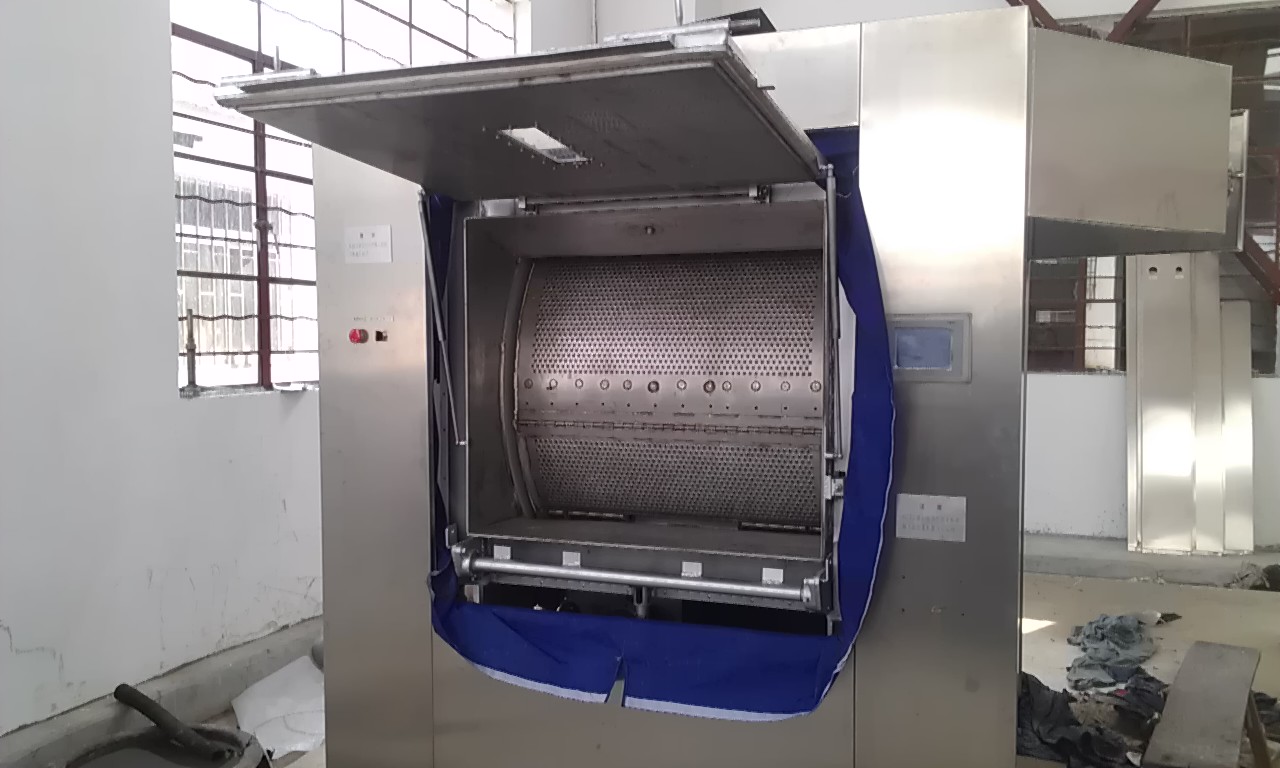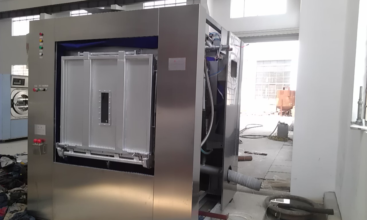 首先,從設(shè)備上采取的衛(wèi)生隔離式洗衣機(jī)。背靠背的兩道機(jī)門,使污染布草的裝載和潔凈布草的卸載從不同的兩個(gè)門進(jìn)出,從源頭上避免了交叉感染。